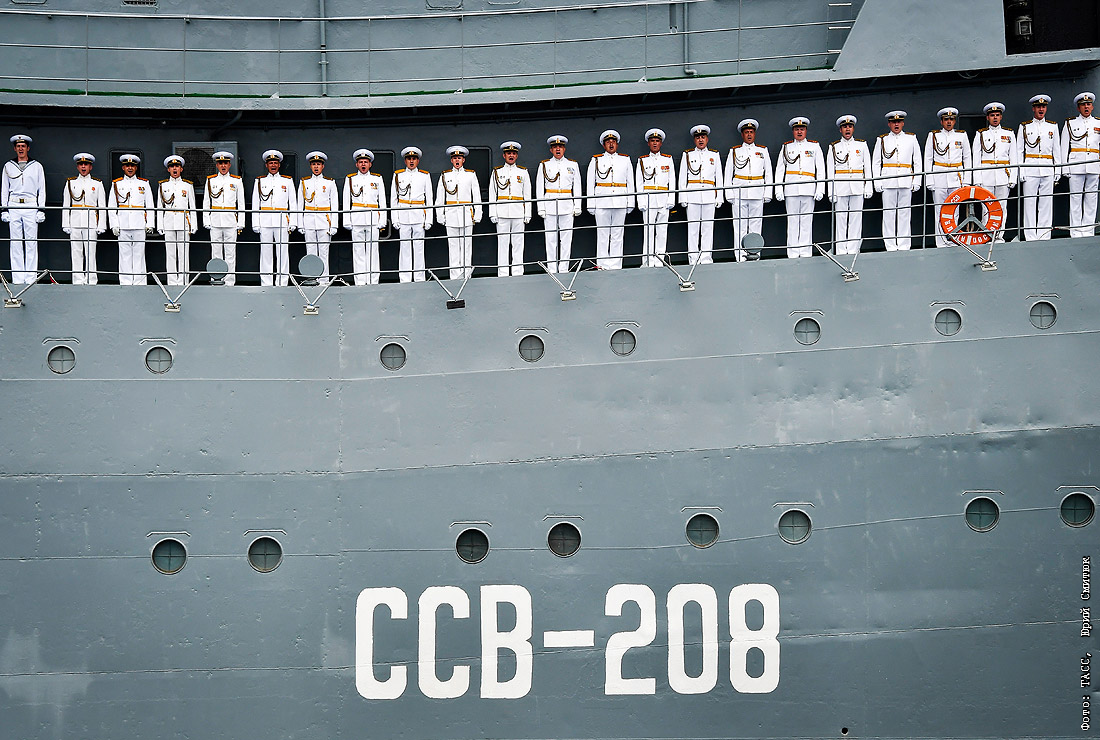 Средний разведывательный корабль проекта 864 ССВ-208 "Курилы" на параде кораблей во Владивостоке
