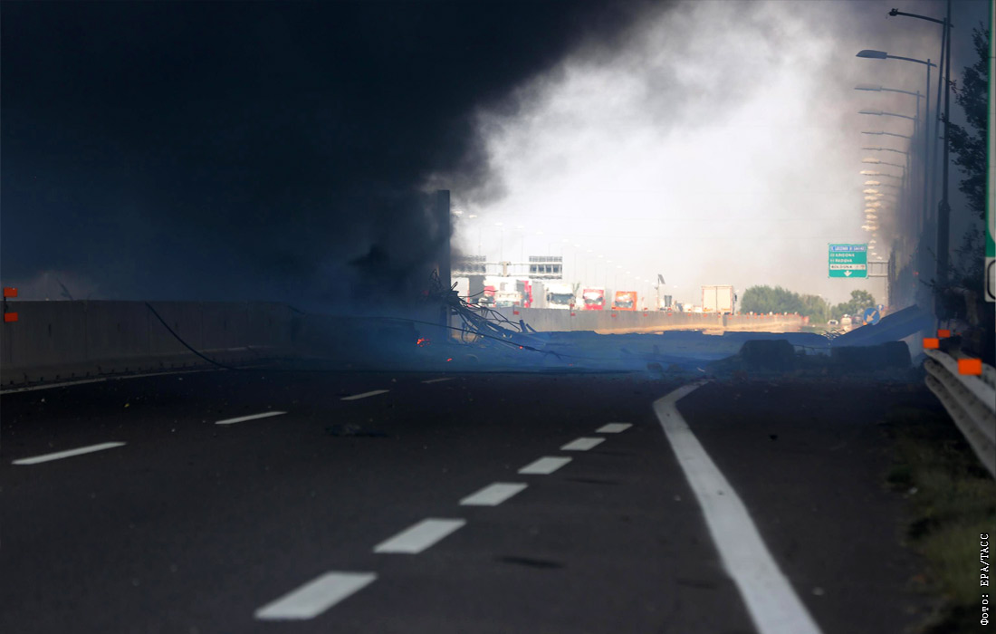 Мощный взрыв произошел близ аэропорта итальянского города Болонья. В результате происшествия один человек погиб и 65 пострадали. Взрыв произошел после аварии с участием грузового автомобиля, который, вероятно, перевозил горючие вещества.