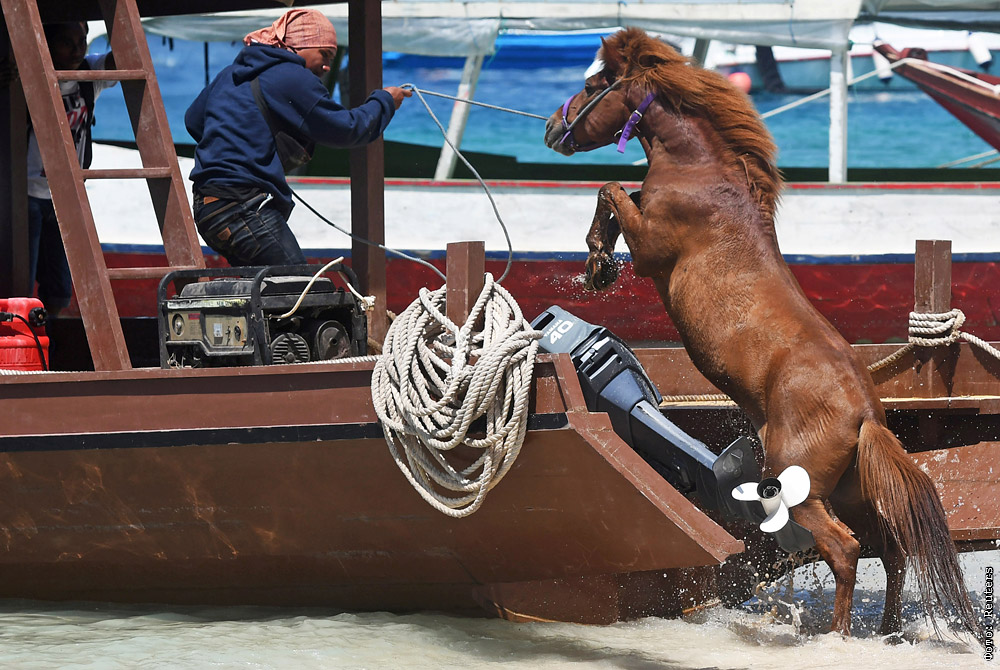 Эвакуауция домашних животных с индонезийского острова Ломбок