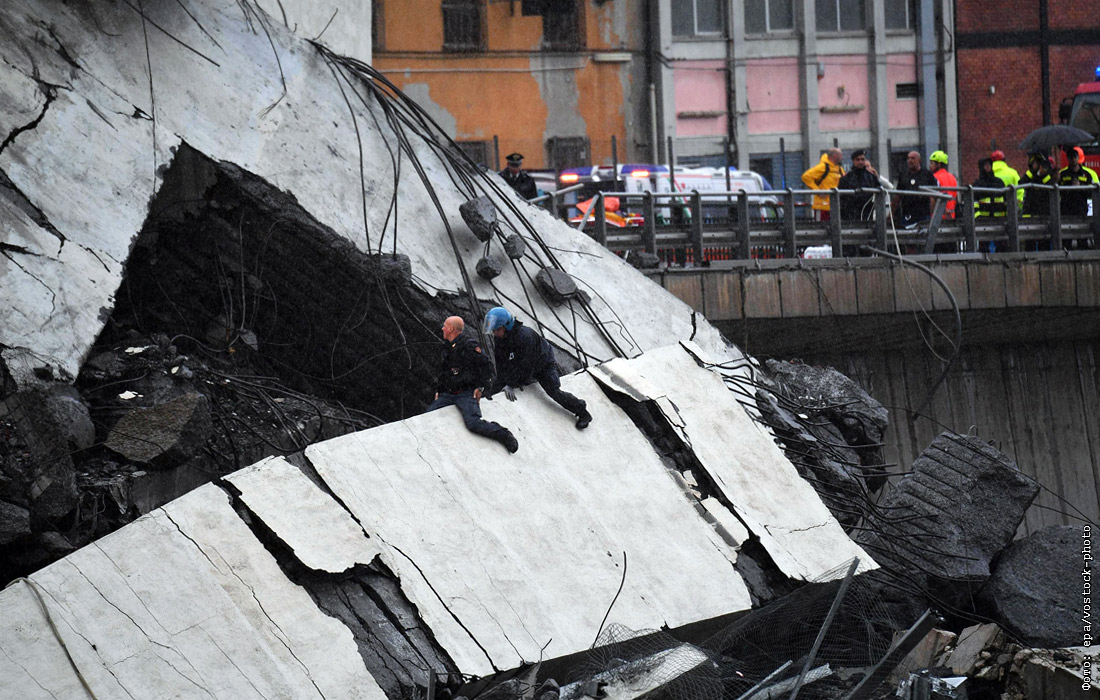 Автомобильный мост обрушился в итальянской Генуе. В момент происшествия на мосту находилось много автомобилей. Жертвами катастрофы стали десятки человек. Местные власти предполагают, что причиной обрушения могло стать ослабление несущих конструкций.