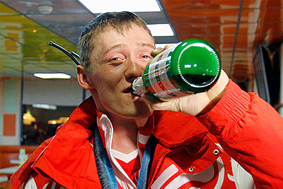 Олимпийский чемпион по лыжному спорту Никита Крюков в аэропорту Шереметьево