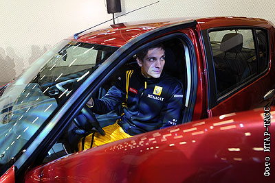 Пилот команды "Формулы-1" Renault Виталий Петров в автомобиле Renault Sandero на заводе "Автофрамос"