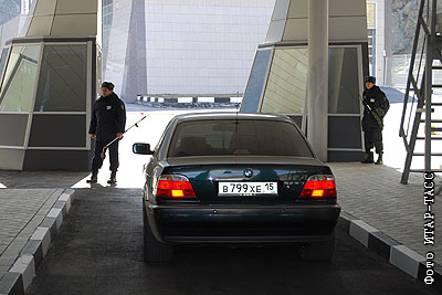 Автомобиль на контрольно-пропускном пункте "Верхний Ларс" на грузино-российской границе