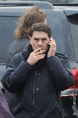 Актер Сергей Маковецкий после церемонии отпевания актера Владислава Галкина в Храме у Никитских Ворот