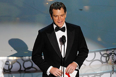 Мэтт Дэймон объявляет победителя в номинации "Лучший сценарий" на церемонии "Оскар"