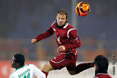 Игроки "Вольфсбурга" и "Рубина" в матче Лиги Европы по футболу: "Рубин" (Россия) - "Вольфсбург" (Германия) - 1:1