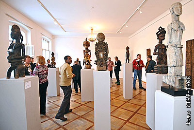 Посетители на выставке "Habari Afrika" из коллекции Рейнхарда Климмта, которая открылась в рамках "Недели Германии в Санкт-Петербурге" в Государственном музее городской скульптуры