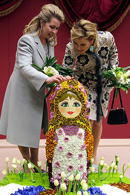 Супруга президента РФ Светлана Медведева и принцесса Нидерландов Максима (слева направо) на Международной выставке цветов в королевском цветочном парке Кекенхоф, неподалеку от Амстердама
