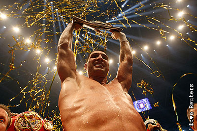 Украинский боксер Владимир Кличко после победы над американцем Эдди Чэмберсом