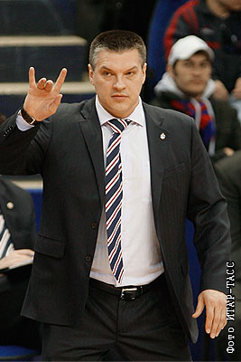 Главный тренер БК ЦСКА Евгений Пашутин во время матча Евролиги УЛЕБ: по баскетболу: ЦСКА (Россия) - "Каха Лаборал" (Испания)