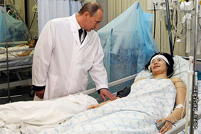 Премьер-министр России Владимир Путин посетил Боткинскую больницу, где на лечении находятся пострадавшие в результате терактов на станциях московского метро.