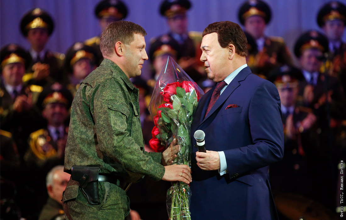 Премьер-министр ДНР Александр Захарченко и певец Иосиф Кобзон (слева направо) в Донецком театре оперы и балета. 2014 год.