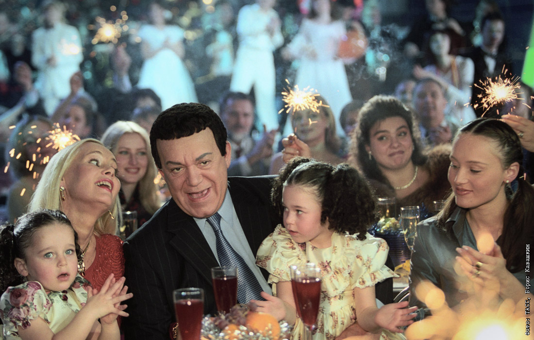 Иосиф Кобзон с женой Нелли (слева), дочерью Натальей (справа) и внучками на съемках новогодней развлекательной программы в Москве. 2003 год.