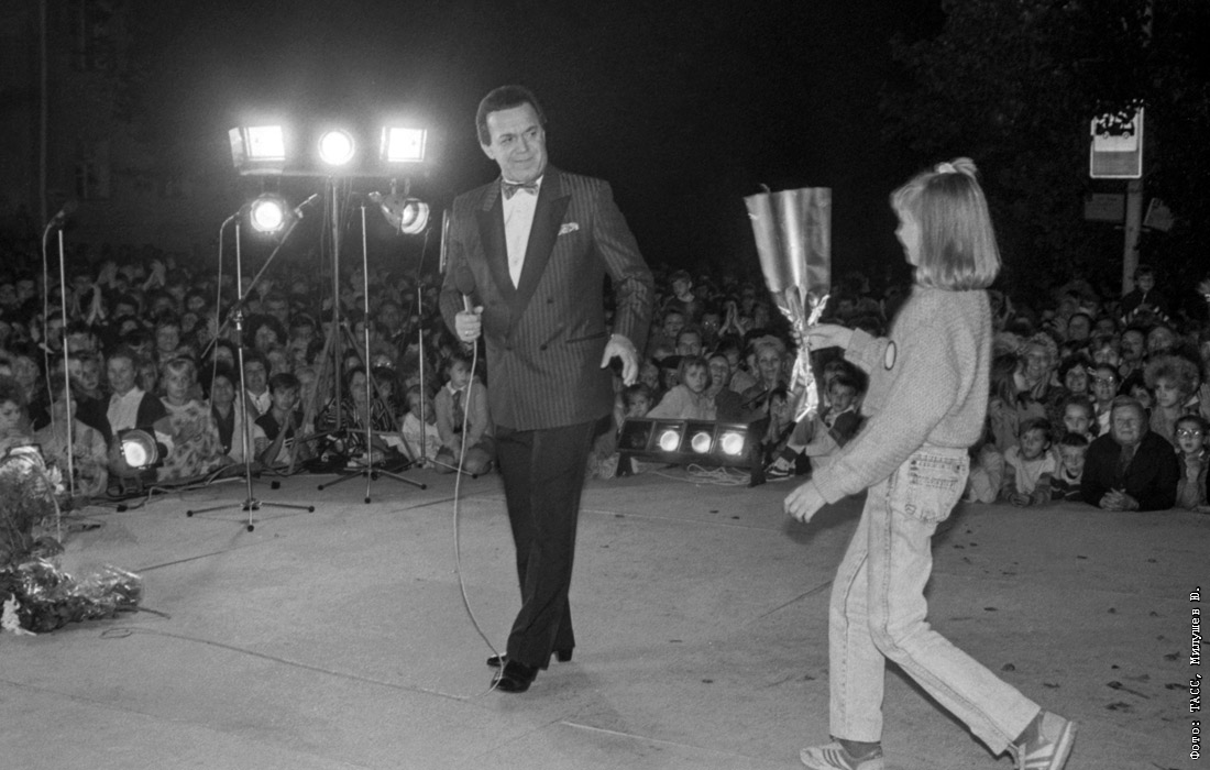Народный артист СССР Иосиф Кобзон во время празднования Дня города в Таганроге. 1991 год.