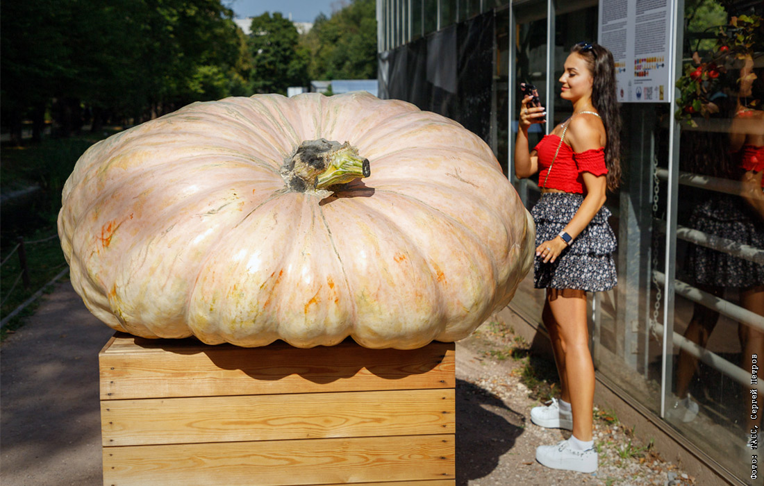 Самую большую тыкву в России весом 645,5 килограмма привезли в Ботанический сад МГУ "Аптекарский огород" в преддверии открытия ежегодного фестиваля урожая "Краски осени"
