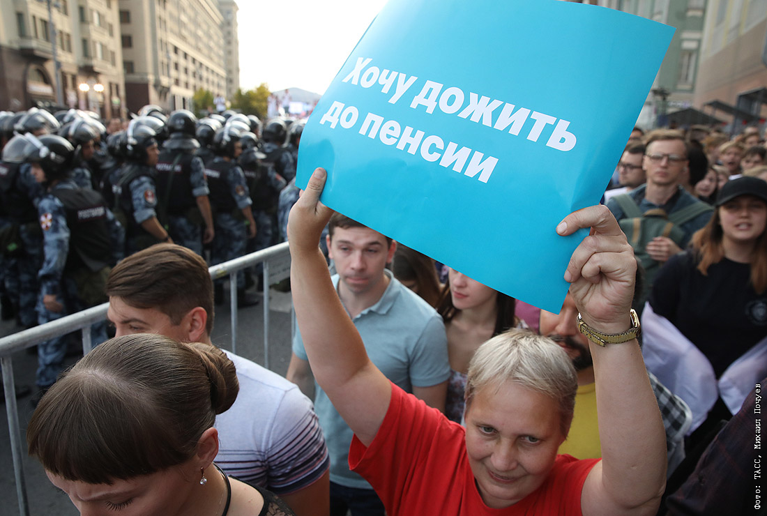 9 сентября в центре столицы прошла несогласованная акция оппозиции против повышения пенсионного возраста. По данным полиции, в протесте приняли участие около 2 тыс. человек. Некоторые митингующие были задержаны.