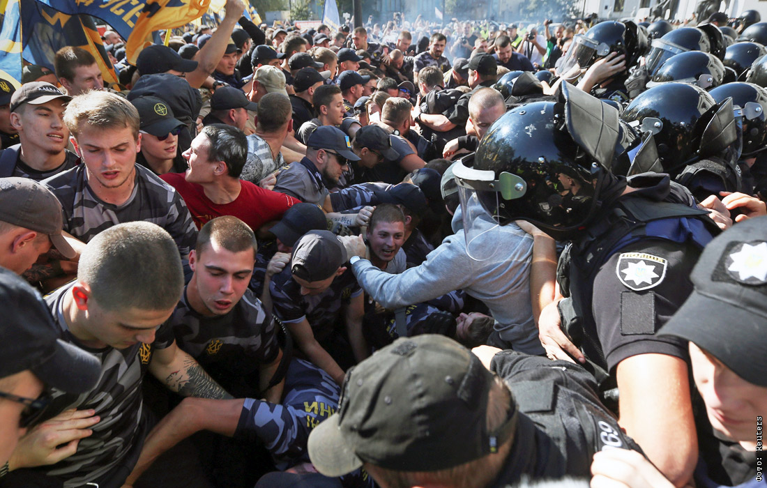 У здания Верховной Рады в центре Киева прошла акция в поддержку участников операции в Донбассе - иностранных граждан. Протестующие требовали от парламента принять законопроект, предусматривающий упрощенную процедуру получения украинского гражданства для участников операции - иностранцев, мораторий на их выдачу иностранным государствам (в частности России) и миграционную амнистию.