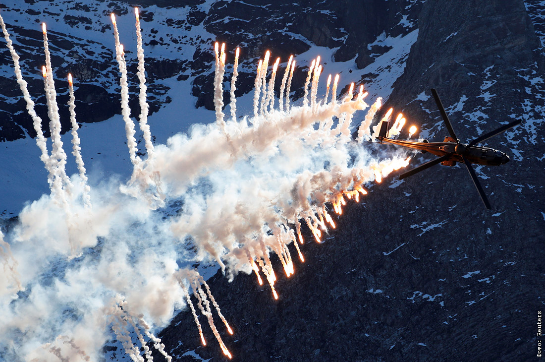 Вертолет Швейцарских ВВС Super Puma Cougar во время демонстрационного полета в Бернском Оберланде