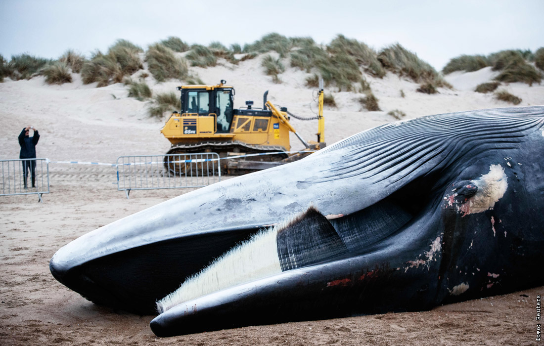 На побережье Северного моря в районе бельгийской курортной зоны Де Кок выбросился 35-тонный кит. Причины возможной гибели млекопитающего устанавливаются.
