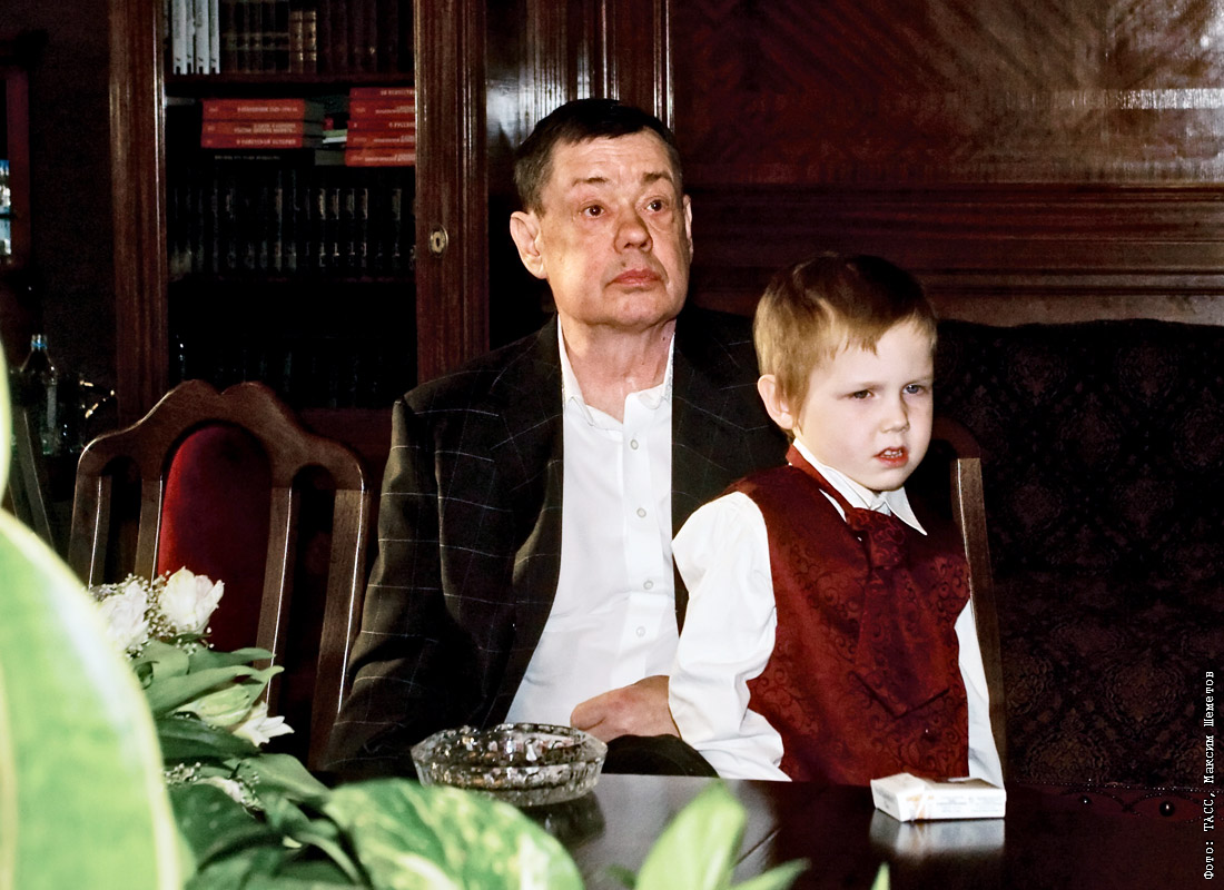 Николай Караченцов с внуком Петей перед началом праздничного вечера, посвященного 40-летию творческой деятельности в театре "Ленком". Апрель 2008 года.