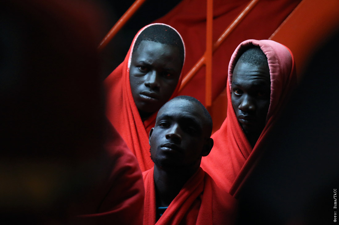 Мигранты, спасенные береговой охраной Испании в порту Малаги