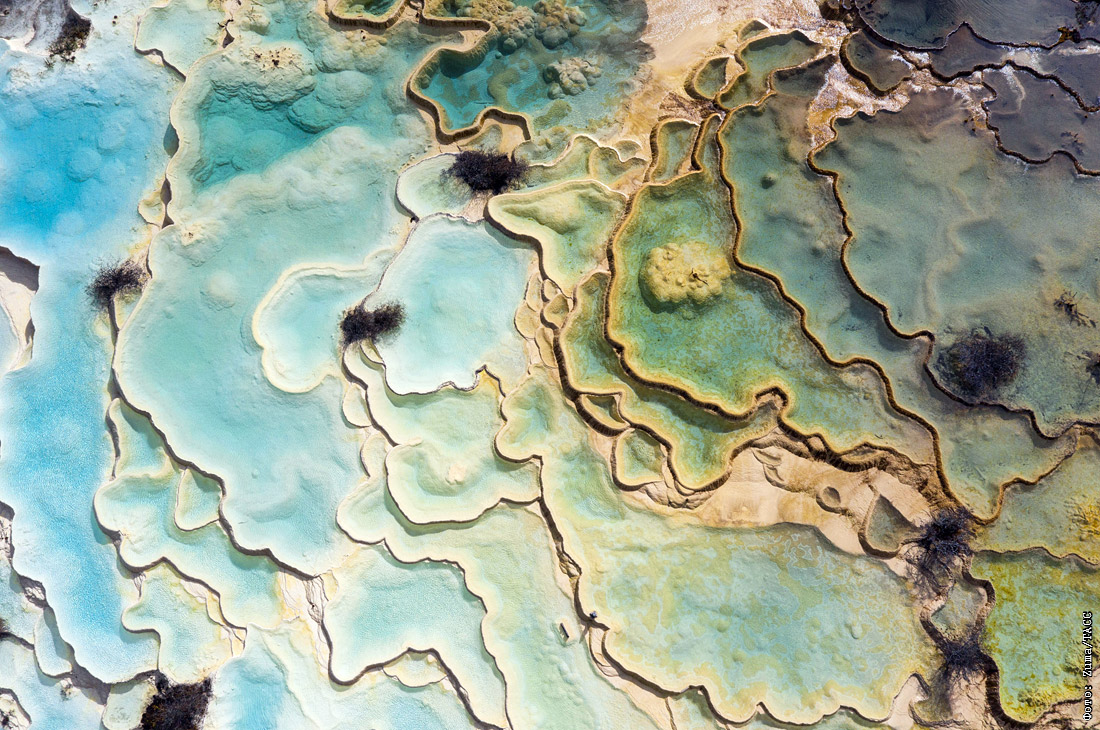 Известняковые бассейны в заповедной зоне Хуанлун на юго-западе Китая