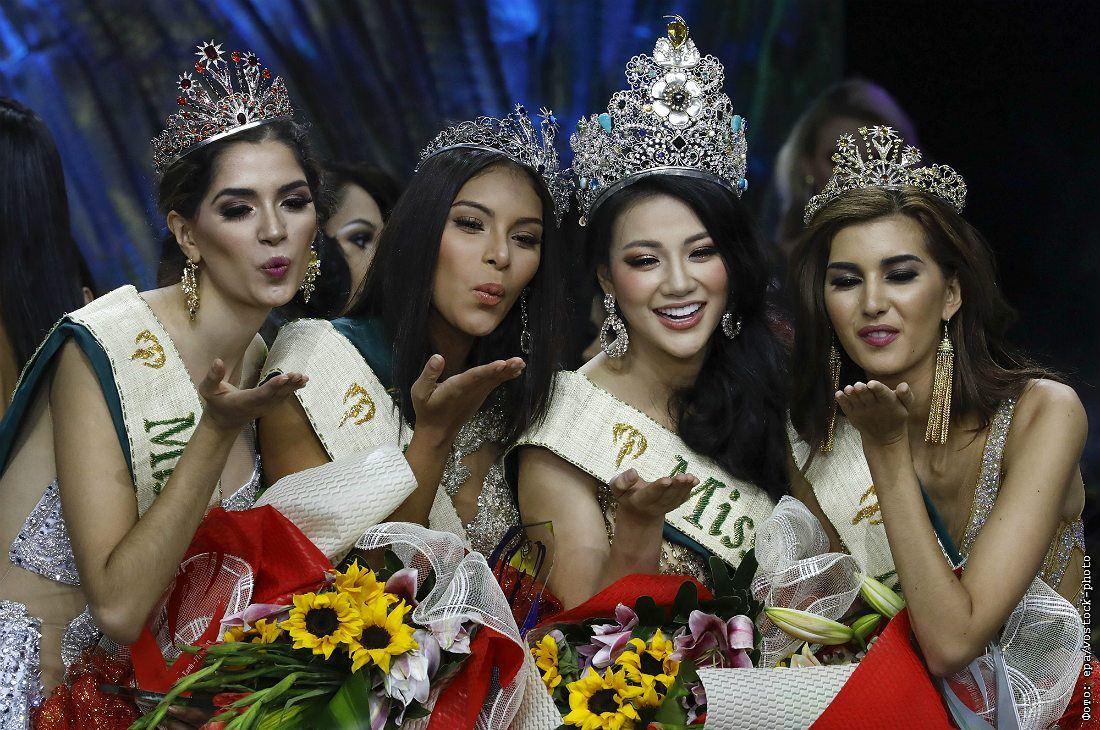 Лауреатки конкурса "Мисс Земля" слева направо: Мелисса Флорес (Мексика), Валерия Айос (Колумбия), Фыонг Кхань Нгуен (Вьетнам) и Мелани Мадер (Австрия)