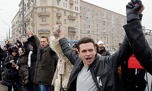 Сторонникам акций "За честные выборы", которые проводили 26 февраля флэшмоб "Большой белый круг", удалось сомкнуть на Садовом кольце живую цепь