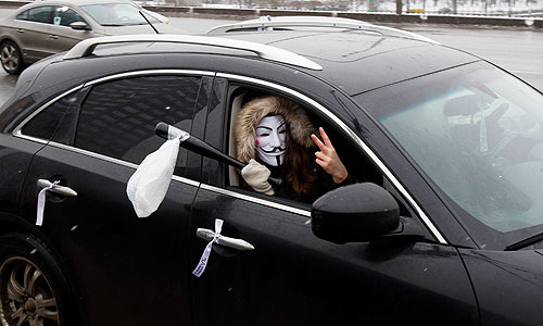 Сторонникам акций "За честные выборы", которые проводили 26 февраля флэшмоб "Большой белый круг", удалось сомкнуть на Садовом кольце живую цепь
