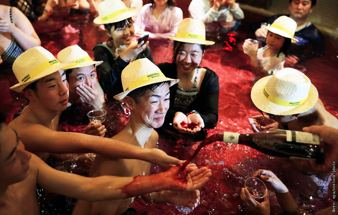 Открытия сезона французского молодого вина Божоле-нуво в бальнеологическом комплексе японского курорта Хаконэ
