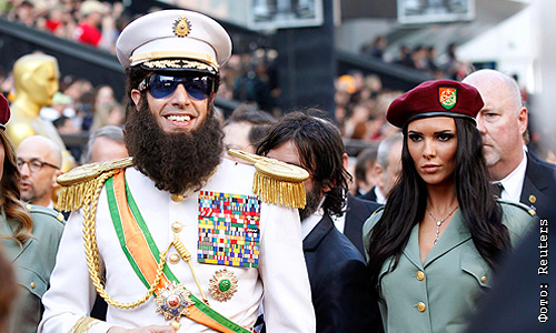 Саша Барон Коэн прибыл на церемонию в роли Генерала Алладина из своего следующего фильма "Диктатор".