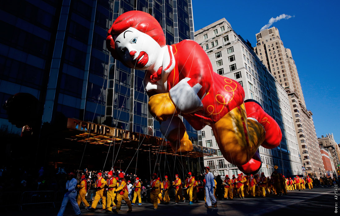 Минувшим вечером в Нью-Йорке состоялся традиционный парад гигантских надувных игрушек Macy’s Thanksgiving Day Parade, приуроченный ко Дню благодарения. Сотни тысяч жителей города и туристов собрались вдоль центральной улицы, чтобы посмотреть на шествие. Самое красочное и массовое дневное зрелище организуется торговой сетью Macy's и символизирует открытие сезона рождественских скидок.