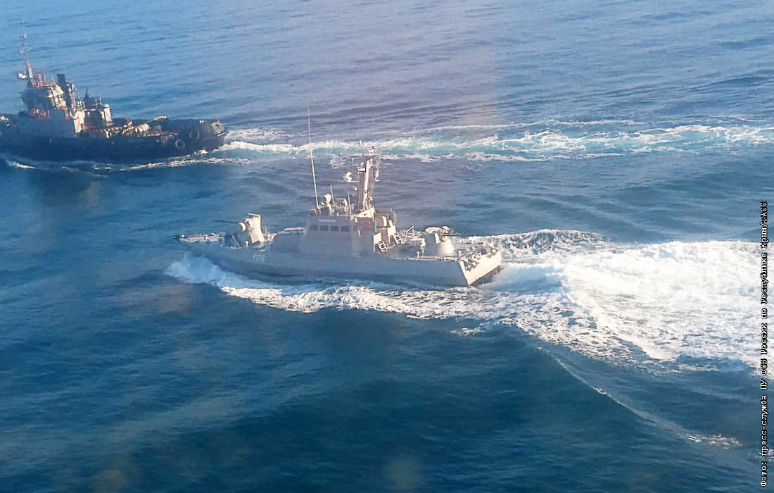25 ноября три украинских военных корабля "Бердянск", "Никополь" и "Яны Капу" предприняли попытку незаконного маневрирования в территориальных водах РФ. Они не отреагировали на требования сопровождавших их кораблей и катеров погранслужбы ФСБ и Черноморского флота РФ о немедленной остановке, в связи с чем российской стороной было применено оружие. В результате все три судна ВМС Украины были задержаны в территориальных водах РФ в Черном море. Трем раненым военнослужащим ВС Украины оказана медицинская помощь.