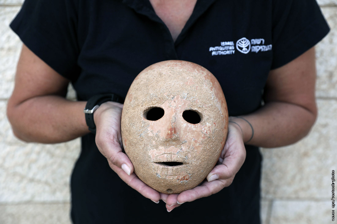 Обнаруженную в районе Хеврона каменную маску возрастом более 9000 лет, которую изъяли у нелегальных археологов, впервые представили публике в Иерусалиме