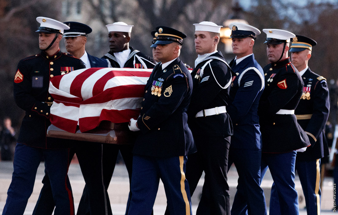 В Вашингтоне проходит церемония прощания с бывшим президентом США Джорджем Бушем, скончавшимся 30 ноября на 95-м году жизни
