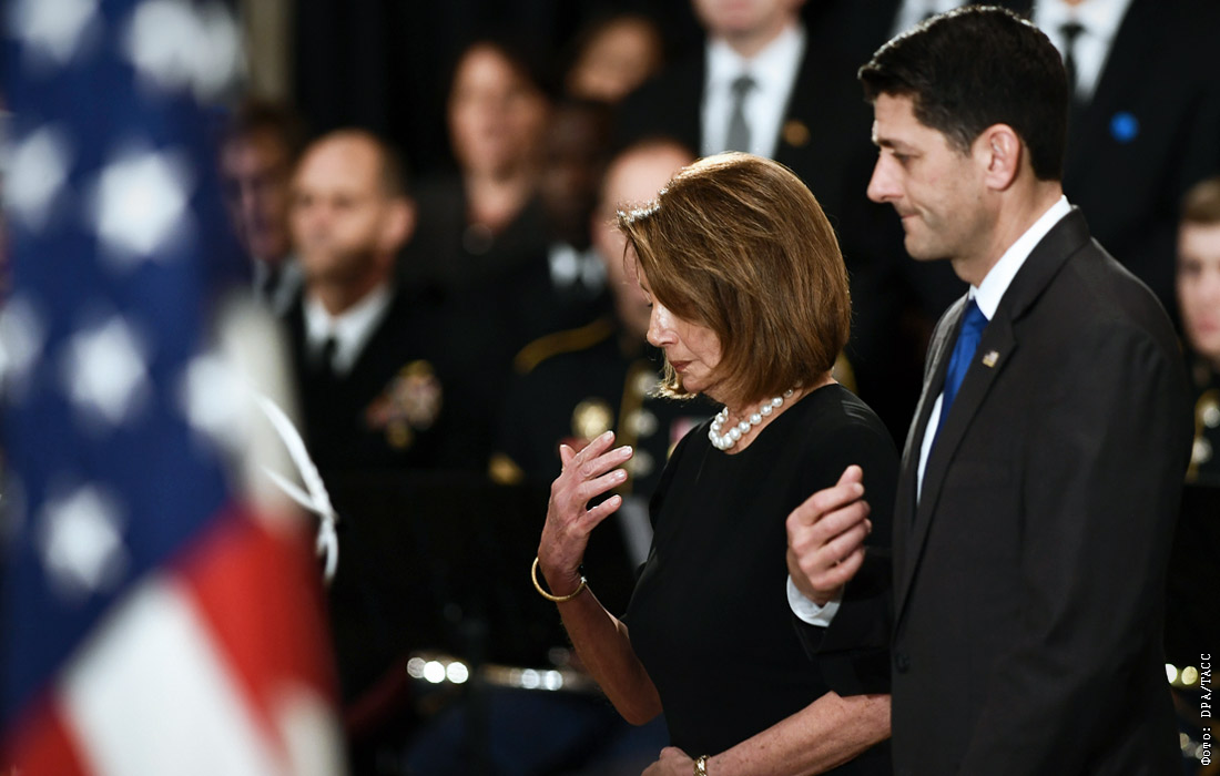 Лидер демократов в палате представителей Нэнси Пелоси и спикер палаты представителей конгресса США Пол Райан