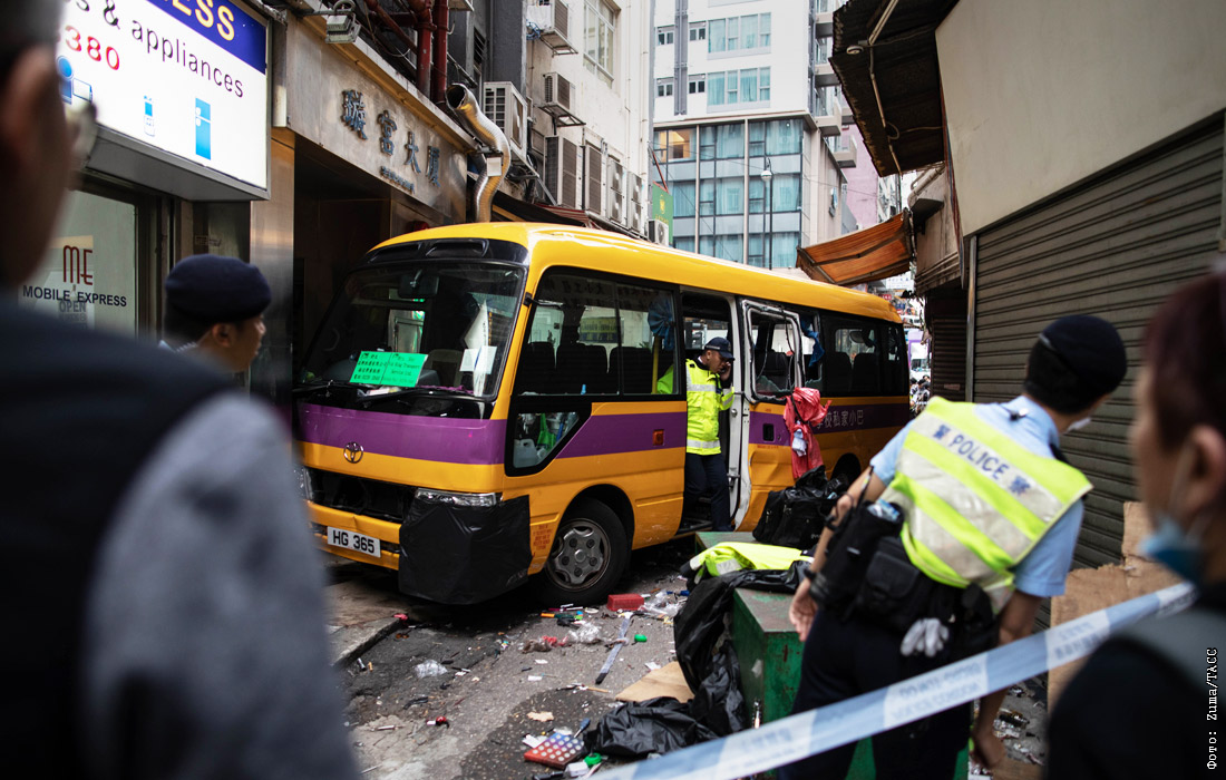 В Гонконге пустой школьный микроавтобус выкатился на тротуар и наехал на прохожих. В результате происшествия четыре человека погибли и десять получили травмы различной степени тяжести. Пострадавшим оказывается медицинская помощь, ведется расследование причин инцидента.