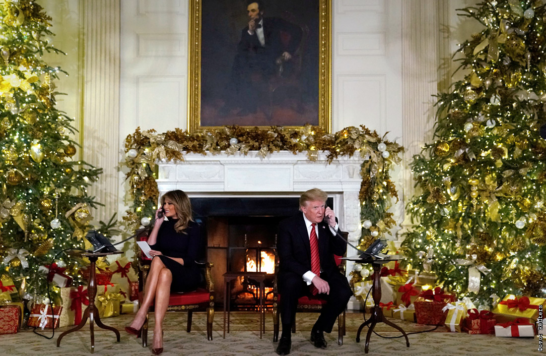 Президент США Дональд Трамп и его супруга Мелания приняли участие в акции по отслеживанию путешествия Санты, в рамках которой любой ребенок может позвонить на организованную военными горячую линию, чтобы узнать о том, где находится Санта-Клаус