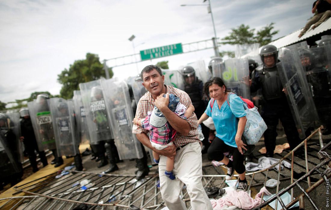 19 октября. В октябре этого года в США через Мексику в составе организованной колонны направились около десяти тысяч мигрантов из Центральной Америки. Караван сформировался в городе Сан-Педро-Сула на севере Гондураса. Тысячи человек покинули родину в надежде пересечь границу США, сбегая от бедности, безработицы и высокого уровня преступности. Президент США Дональд Трамп направил военных для ужесточения контроля на американо-мексиканской границе. На фото: штурм пограничного контрольно-пропускного поста в Гватемале мигрантами из Центральной Америки.