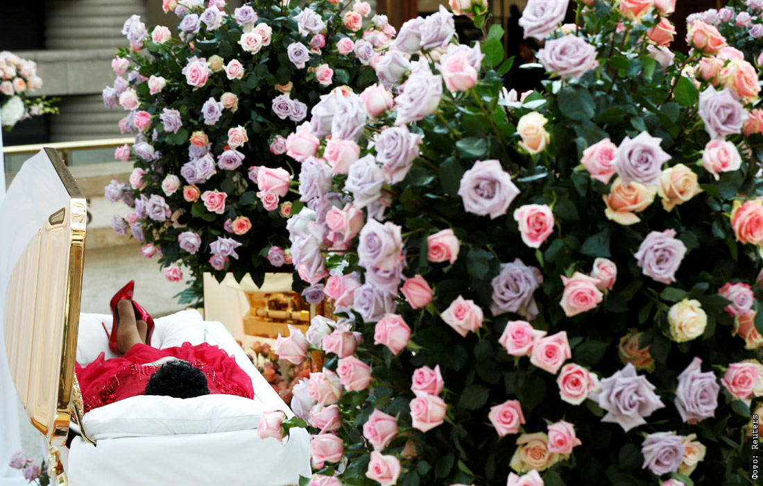 28 августа позолоченный гроб с телом легендарной певицы Ареты Франклин установили в Музее истории афроамериканцев Чарльза Райта в Детройте, чтобы поклонники могли попрощаться с артисткой. Американская певица скончалась 16 августа в возрасте 76 лет после продолжительной болезни.