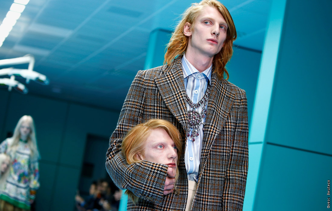 21 февраля в Милане состоялся показ осенне-зимней коллекции бренда Gucci, во время которого модели вышли на подиум, держа в руках аксессуар в виде своих голов