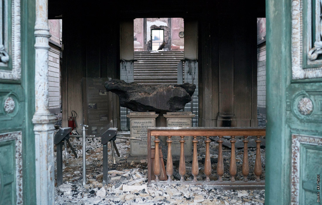 2 сентября в Рио-де-Жанейро огонь полностью уничтожил Национальный музей Бразилии, в котором хранились примерно 20 млн экспонатов. Среди самых известных экземпляров музея - скелет динозавра, обнаруженный в бразильском штате Минас-Жерайс, а также самый древний человеческий скелет, найденный на территории современной Бразилии и получивший наименование "Лузиа". Один из немногих уцелевших объектов - пятитонный метеорит Бендего, упавший в Бразилии больше двухсот лет назад.