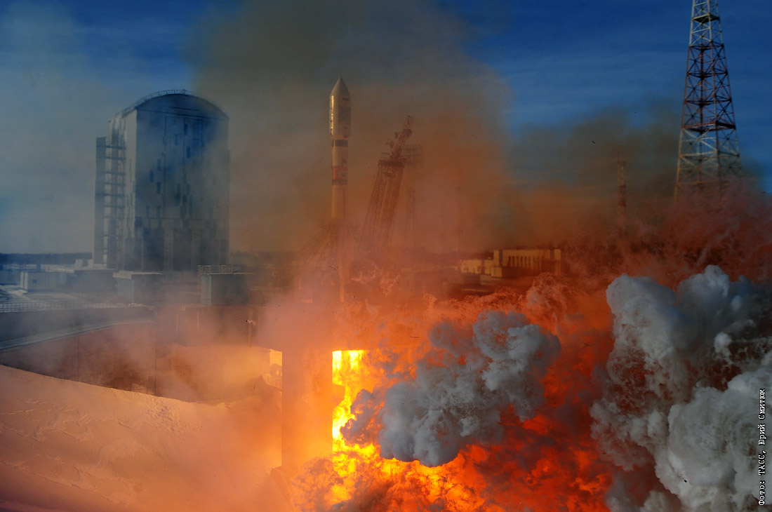 Запуск ракеты-носителя "Союз-2.1а" с российскими спутниками дистанционного зондирования Земли "Канопус-В" №5, №6 и 26 иностранными космическими аппаратами со стартового комплекса космодрома Восточный