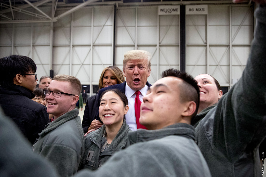Президент США Дональд Трамп на американской авиабазе Рамштайн в Германии
