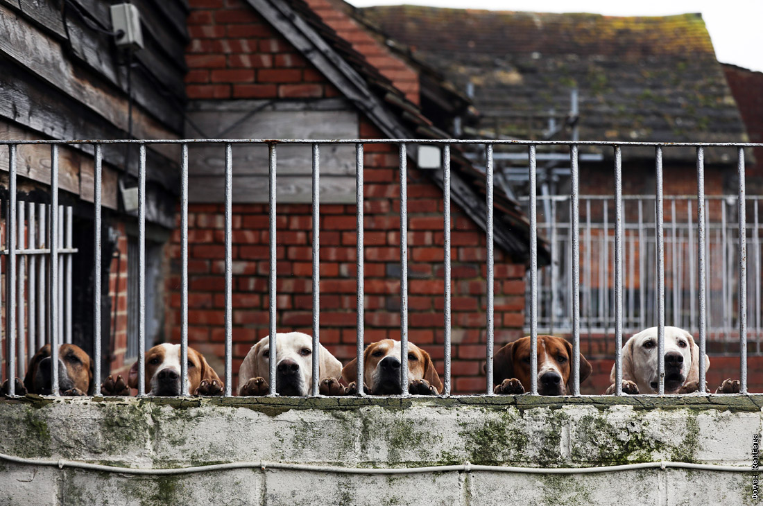 Гончие перед традиционной охотой в честь Дня подарков в Великобритании