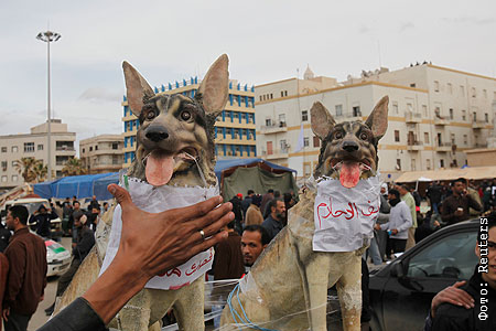 Участники антиправительственной демонстрации в Бенгази назвали статуэтки собак именами Муамара Каддаффи и его сына, Сеифа аль-Ислама