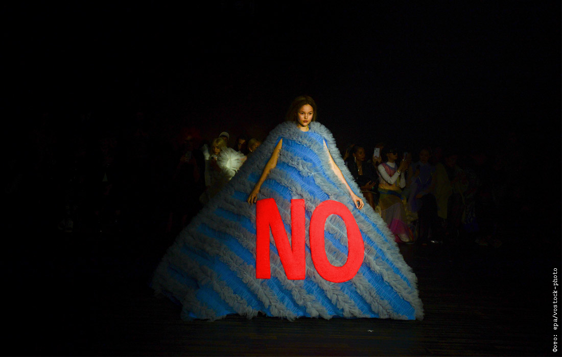 Модель во время показа коллекции голландского дуэта Viktor & Rolf