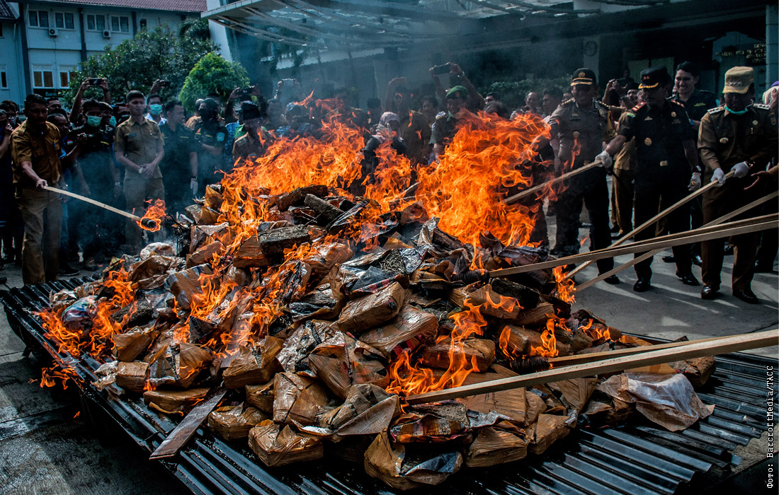 Полиция индонезийской провинции Аче сожгла 500 килограммов марихуаны, изъятой из оборота