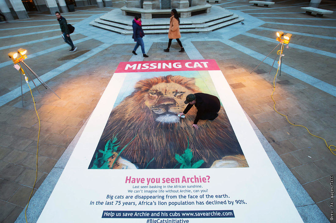 Меловое граффити в поддержку инициативы "Большие кошки" под эгидой Национального географического общества на площади Патерностер в Лондоне