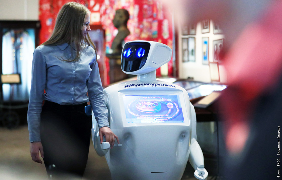 Робот Promobot V.2 по имени Митя, выполняющий функции администратора и навигатора, в Музее промышленности и искусства в Иваново